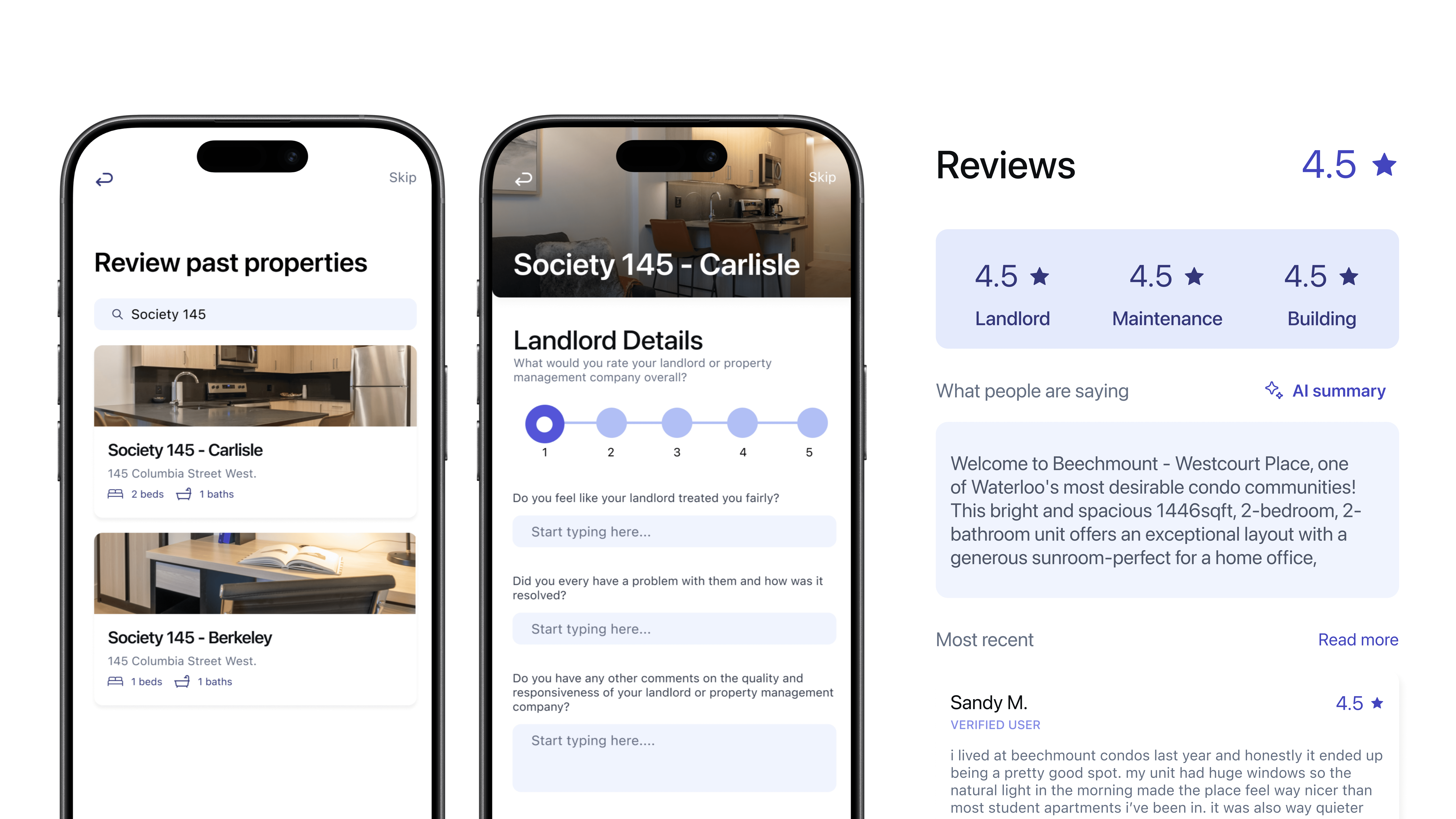 extensive review system, including rating the landlord/property managers